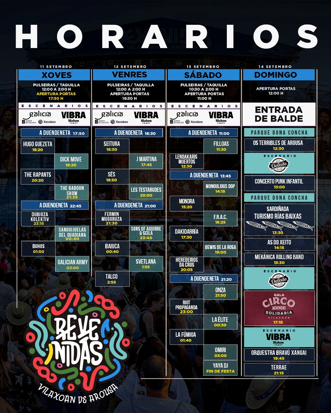 O festival Revenidas, que se celebrará en Vilaxoán do xoves 11 ao domingo 14 de setembro, vén de desvelar os horarios dos máis de 30